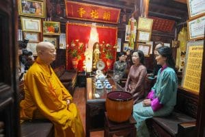 Queen Jetsun Pema and the First Lady visited the oldest Buddhist temple in Hà Nội, Trấn Quốc Pagoda. They offered incense and prayers at the temple.