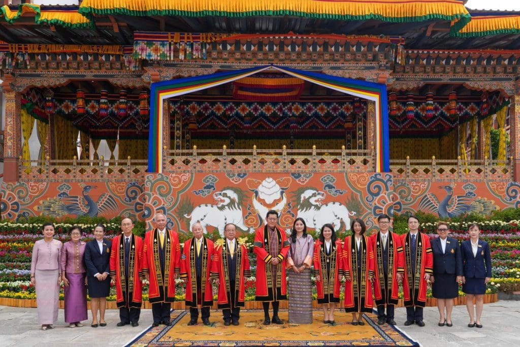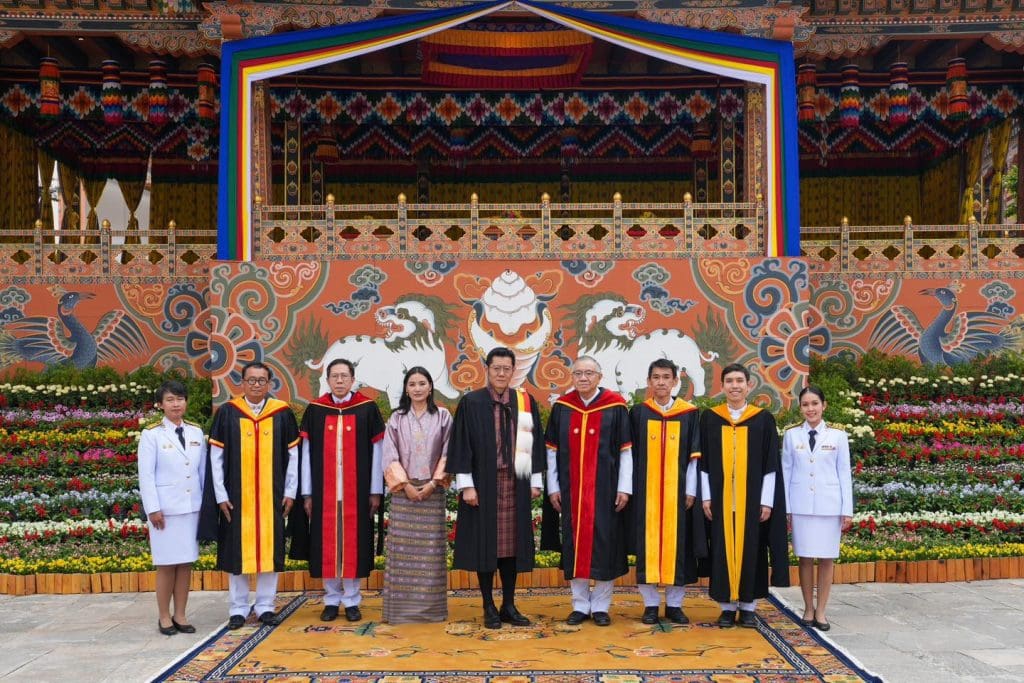 A ceremony was held at Dungkar Dzong with delegations from the universities. The King thanked the universities for their gesture of recognition and the people of Thailand for their friendship.