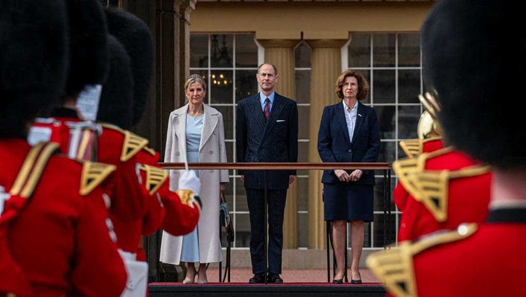 The Duke and Duchess were accompanied by the UK Chief of the General Staff, the French Chief of the Army Staff, and the French Ambassador to the UK as they attended a parade to commemorate the 120th Anniversary of The Entente Cordiale at Buckingham Palace.