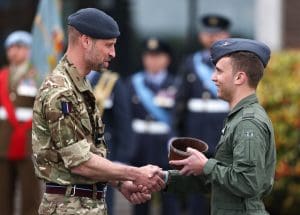 His visit began with an inspection of the troops before he handed out the annual award to Flying Officer Kieran D’Lima.