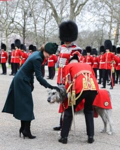 Of course, the star of the show was the regimental mascot Turlough Mor, an Irish wolfhound. As is tradition, the Princess gave the pup, nicknamed Seamus, a sweet pat.