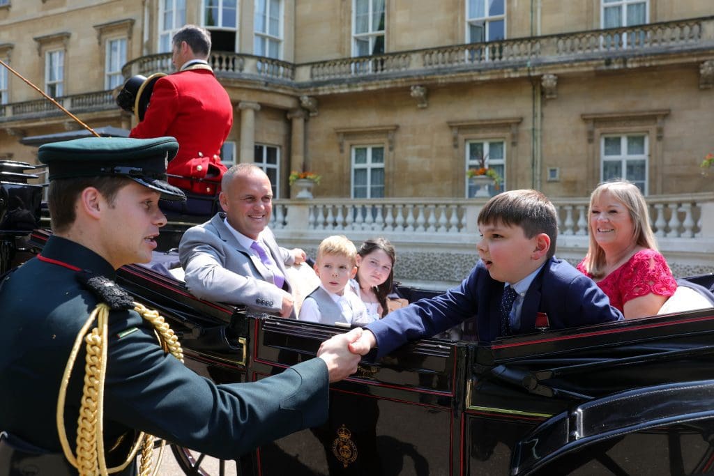 The garden party was held for Tony Hudgell and Lyla O’Donovan and their families. Upon arrival at Buckingham Palace, the children watched the Changing of the Guard from inside the forecourt. They then went inside for a private tea party in the Summer House in Buckingham Palace’s garden.