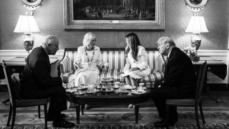 Queen Camilla gave First Lady Melania Trump a brooch by British designer Fiona Rae. Rae is one of many who benefited from the King’s Trust (formerly called the Prince’s Trust), receiving advice and a loan. She was one of the first businesses to be granted a Royal Warrant by King Charles.