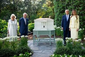 His Majesty presented President Donald Trump with a framed facsimile of the 1879 design plans for the Resolute Desk (the desk of the President in the Oval Office that is made of timbers of the British exploration ship H.M.S. Resolute). The original designs are located in the National Maritime Museum in Greenwich, London.