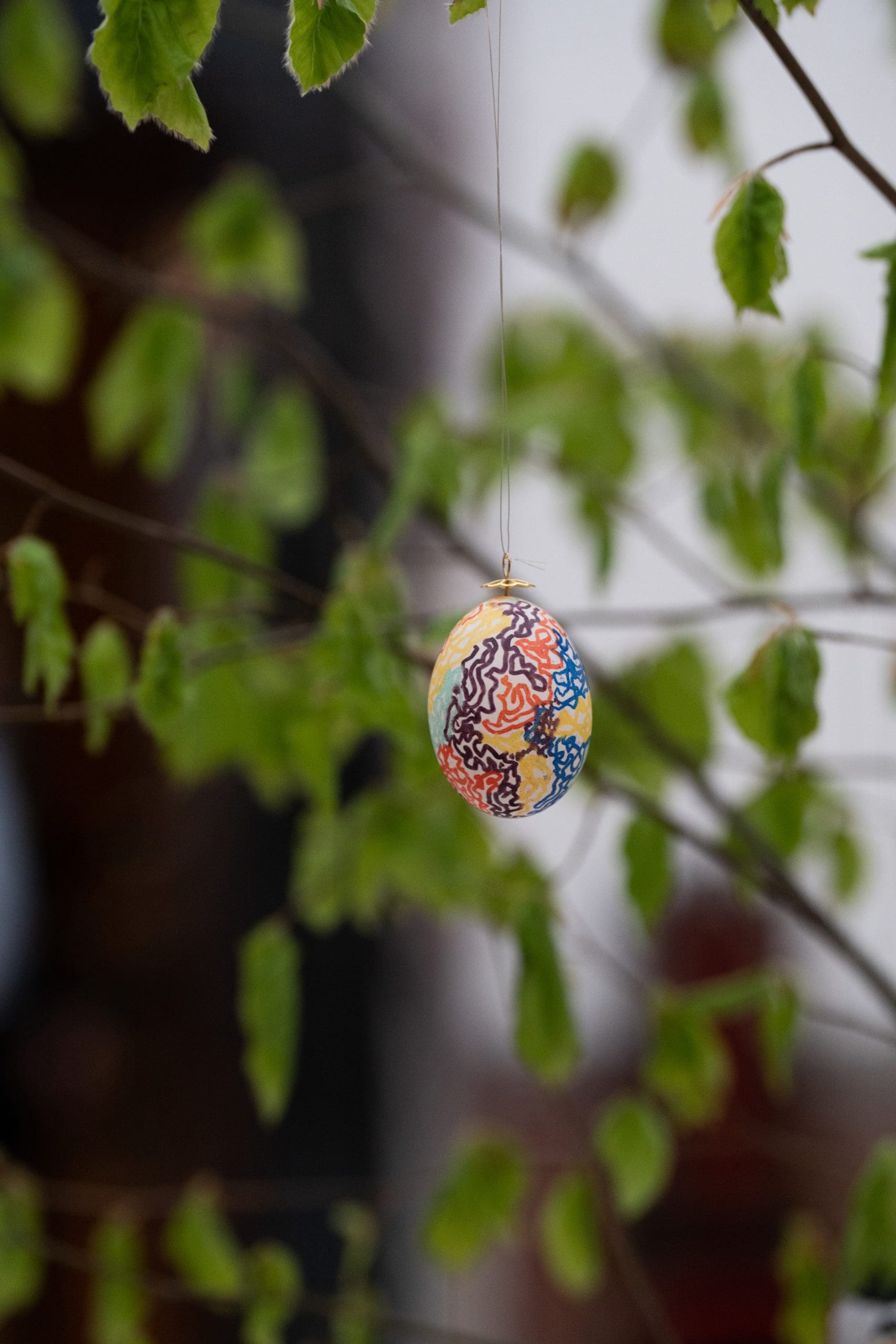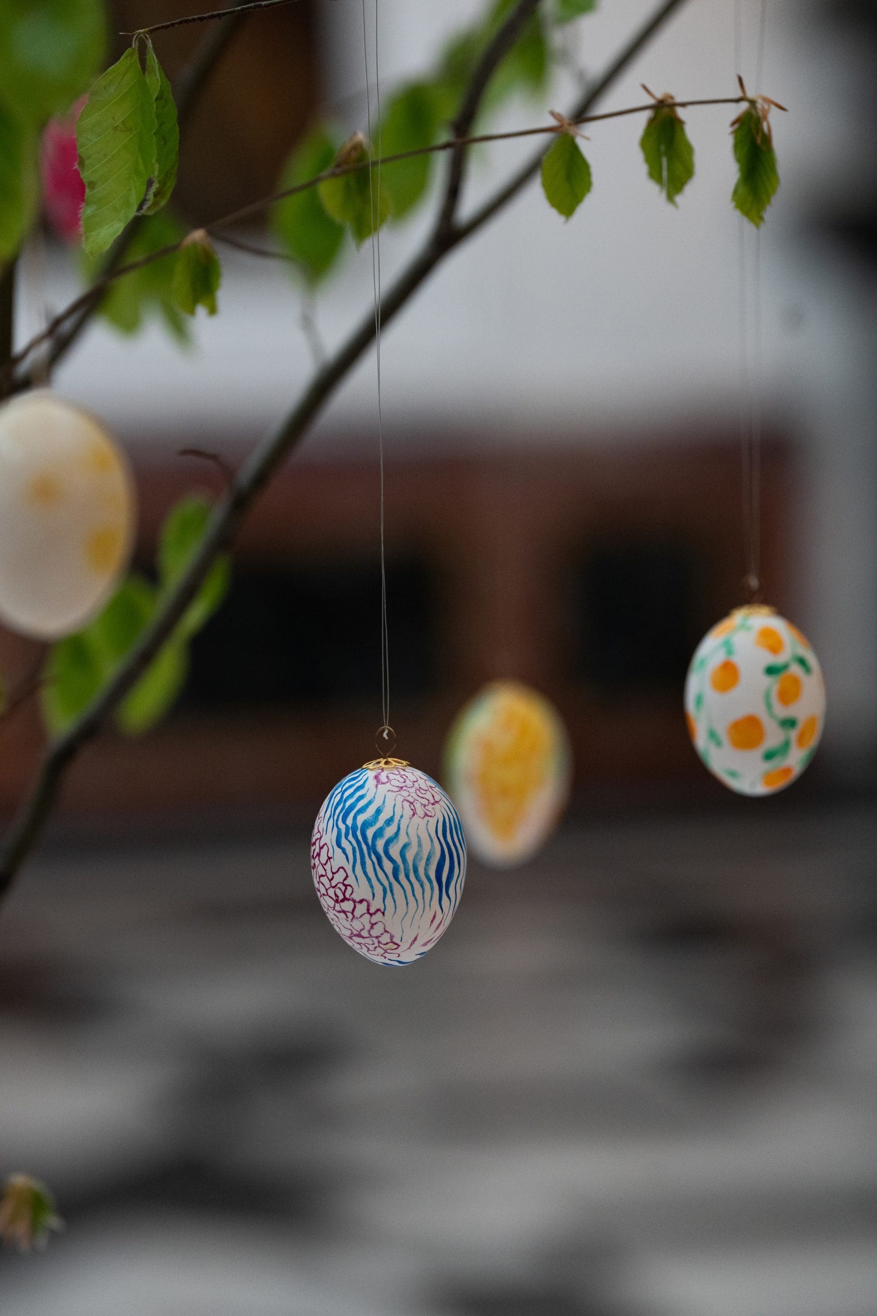 The dinner table was decorated with painted eggs that Her Majesty had painted over the years.