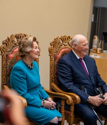 King Harald and Queen Sonja travelled to the United Kingdom to mark the 80th anniversary, where the Norwegian government, including Harald’s father and grandfather, spent the majority of the war in exile.