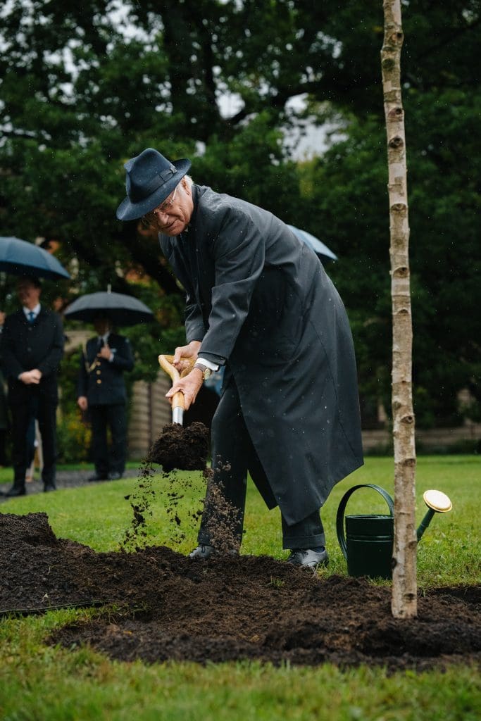 The King concluded the county visit by planting an Ornäs birch and unveiling a plaque commemorating the anniversary. The Queen watered the newly planted tree for him.