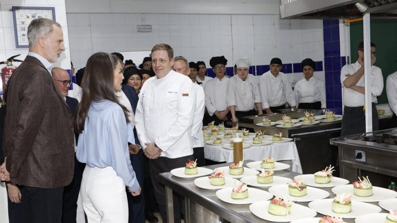 The King and Queen visited the headquarters of the José María de Llanos Foundation. The foundation was founded in 1961 by Father Llanos and became a dedicated vocational training school. It has been a hospitality school since 2001 and is dedicated to training restaurant professionals.