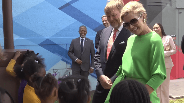 During a visit to the Dr Henry W. Mack/West Little River K-8 Center with King Willem-Alexander, the Queen chatted with children and sang along when a few of them performed a Bruno Mars song.